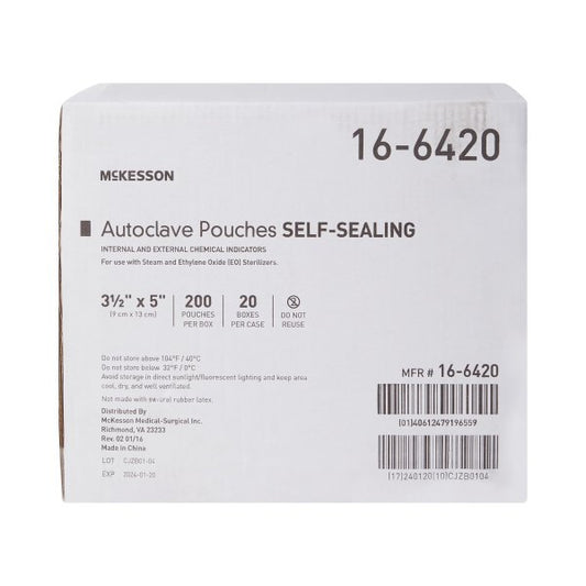 Sterilization Pouch McKesson Ethylene Oxide (EO) Gas / Steam / Transparent Blue / White Self Seal Paper / Film
